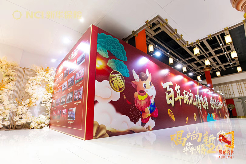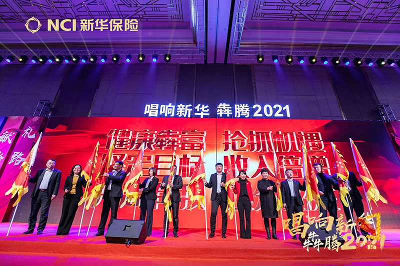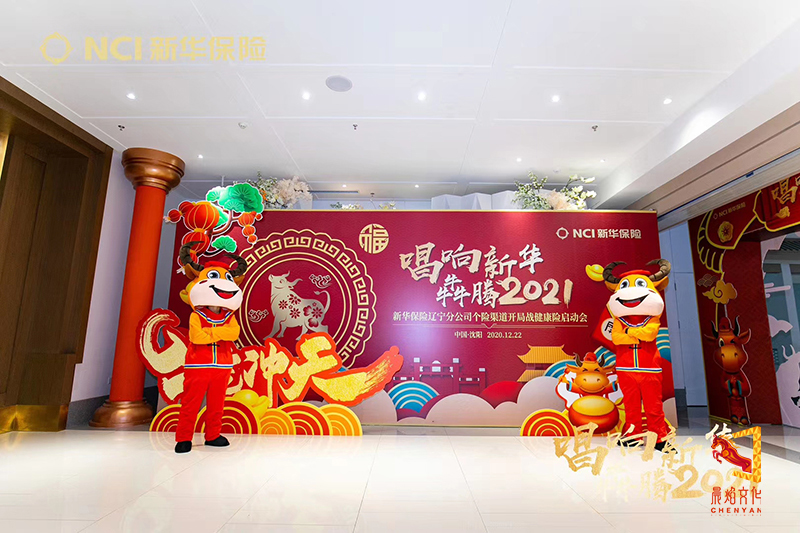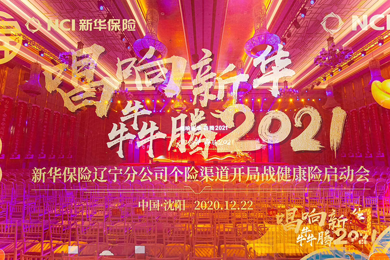 会议主题:新华保险辽宁分公司启动会 百年献礼腾飞路,健康犇富新华章,健康犇富,坚定目标,抢抓机遇,收入倍增!愿新华保险发展永不停息!